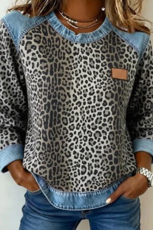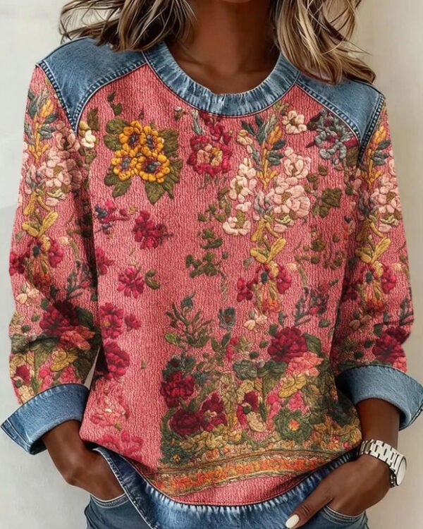 Womens Retro Crew-Neck Long-Sleeve Sweatshirt Top